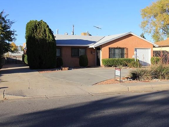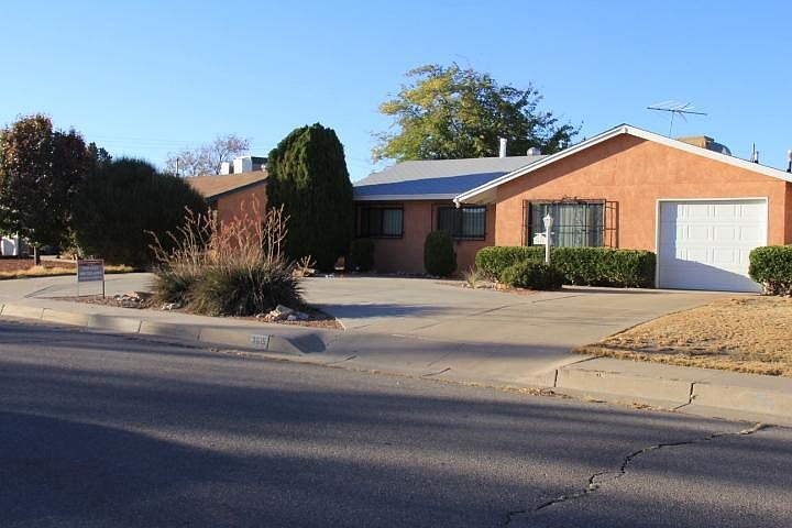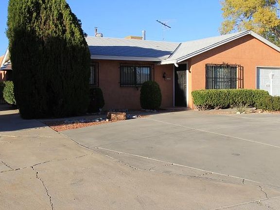 Great find in the NE Heights! 2 living areas, open kitchen with lots of cabinets, opens to family room with Fire place. Home has been very well cared for, inside and out! Large laundry (washer& dryer convey as is) with storage cabinets. Extended covered patio out back to enjoy, grilling, entertaining or relaxing while enjoying your morning cup of coffee/tea. Workshop/studio/playhouse out back next to storage shed. Workshop does have wall heater. Back yard access, so Don't forget the RV, ATV, or camper, there's plenty of room! HUGE walk in closet in master bedroom. Really great home in a nice established well kept neighborhood. Grisham Park near by, close to shopping, restaurants & freeway access. A must see! Security-bars/doors and wired for alarm.