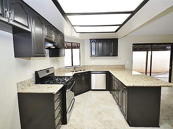 Commuter friendly, a 4-5 minute drive to freeway access. This beautiful home has 3 bedrooms, 2 full baths, high ceilings, large living room, Master bedroom with a private full bath, kitchen has granite counter tops, large kitchen island with plenty of counter space as well as plenty of cabinets, with nice big Tile floors, in kitchen, hallway, nice covered patio so you can enjoy the summer daysBack / Front with automatic sprinkler system.