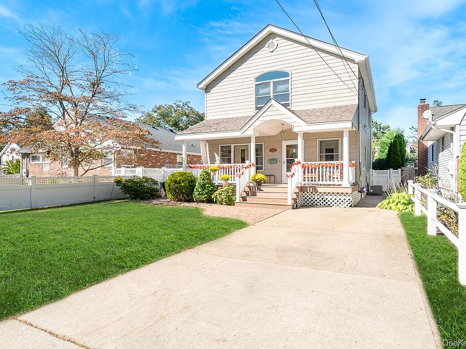 This charming 3-bedroom, 2-bath Colonial is full of warmth and character. Enter onto the inviting front porch, the perfect spot for for sitting and enjoying the neighborhood, and then inside to a home filled with natural light and beautiful hardwood floors. The open kitchen and dining area make mealtime and gatherings easy, while the partially finished basement offers bonus space with tons of potential. Upstairs, you’ll find three comfortable bedrooms and a full bath, including a primary bedroom with cathedral ceilings that feels spacious and bright. With central air to keep you cool in the summer and a private backyard for barbecues, playtime, or simply enjoying the outdoors, this home has everything you would need. Located in desirable Wantagh Woods, close to schools, parks, and all the conveniences of town, this home is a wonderful opportunity to put down roots in a welcoming community.
