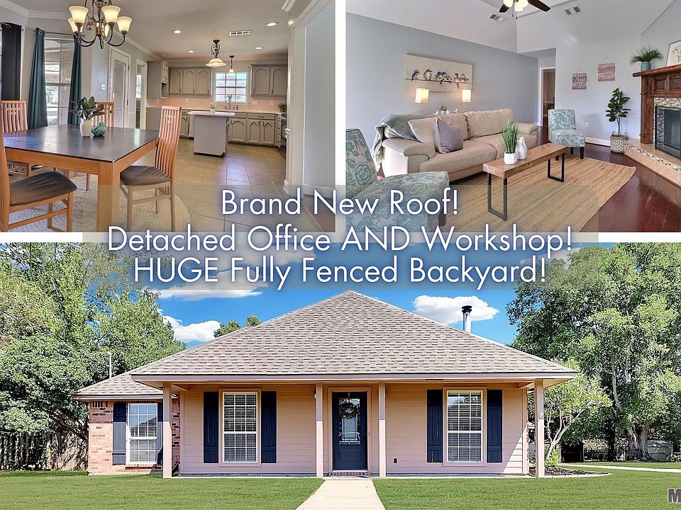 Welcome to Zachary Hill Estates! This exceptional home, nestled within the renowned Zachary School District, is waiting for you! Stepping inside, you are welcomed with a grand living room featuring high ceilings and a charming wood-burning fireplace, setting the stage for cozy gatherings and tranquil moments. The kitchen features a spacious layout and convenient butler's pantry, perfect for those who love to cook or entertain. The primary bedroom offers a peaceful retreat with its ample size and a private ensuite bathroom. The property sits on an almost 1/3rd acre lot, providing ample space for outdoor activities, gardening, and more. Additionally, you'll find a versatile shed that can serve as a workshop or storage area, along with a covered carport for parking convenience. Step into the large, fenced backyard, perfect for gatherings, recreation, or relaxation. If you need a separate workspace, there's an additional shed that can easily be converted into a functional home office, ideal for remote work or creative pursuits. This property also comes with added peace of mind, featuring a BRAND-NEW ROOF and a recently updated HVAC system, just 1 year old. Not to mention this home is FLOOD X! No flood insurance is required. Don't miss the chance to make this your new home!