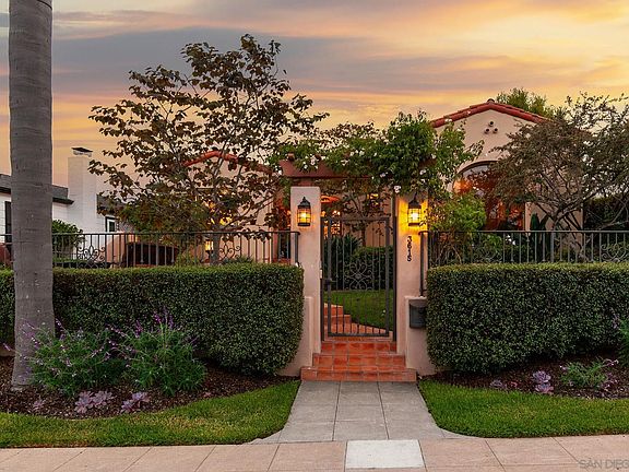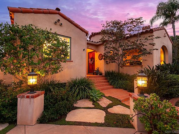 Step into the charm and elegance of this beautifully maintained Spanish-style single-story home, perfectly situated in the coveted Plumosa Park neighborhood. Built in 1934 and brimming with original character, this 3-bedroom, 3-bathroom home offers approximately 2,219 square feet of inviting living space on a generous 6,000 square foot lot. Gated entry will great you as you enter into the front courtyard with a lush private yard, elevated patio with sit down views of Downtown and a fountain. From the moment you walk up to the covered front porch you’ll be captivated by the home’s warm curb appeal, lush, meticulously landscaped gardens, and classic Spanish architectural details. Inside, arched doorways, natural light, and timeless finishes create a welcoming atmosphere, while an extra bonus room offers flexibility for a home office, studio, or guest space. Out back, escape to your own private oasis—complete with a relaxing hot tub, vibrant landscaping, and plenty of space for entertaining or quiet evening retreats under the stars. The 2-car garage with a dutch door entry from the back yard, adds convenience and storage to this already incredible home. Located in one of Point Loma’s most desirable neighborhoods, you’ll enjoy a strong sense of community, walkable streets, and close proximity to beaches, shopping, dining, and top schools. This is more than just a home—it’s a rare opportunity to own a lovingly preserved slice of historic San Diego charm. Come see it for yourself!