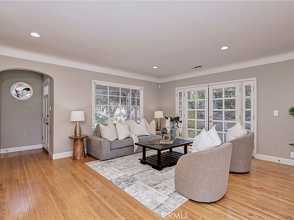 Located on one of the most desirable streets in Long Beach's Historic California Heights, this stunning 1940s Traditional home blends classic charm with stylish modern updates. Nestled on a large corner lot, this turnkey residence is surrounded by picturesque, old-growth trees and landscaping, creating an inviting atmosphere from the moment you arrive. Step inside to discover an expansive open floor plan, where natural light floods the living spaces through large windows and French doors. The heart of the home is the entertainer’s chef’s kitchen, featuring Quartz-topped counters, a gorgeous French windows, and seamless flow into the dining and living areas. Warm hardwood floors and coved ceilings add timeless elegance throughout. The private areas of the home are equally impressive, with a spacious primary suite offering large corner windows, a walk-in closet, and a beautifully updated ensuite bathroom with a walk-in closet, dual sinks, updated finishes, and a step-in shower. Two additional bedrooms and an updated guest bath provide ample space for family or guests. Outdoor living is a dream with private patios on both the South and West sides of the home, perfect for entertaining or simply enjoying the serene surroundings. The nearly 6,800 square foot lot offers endless possibilities, including potential for an ADU with convenient alley access to the oversized one car garage and RV parking. Fruit trees galore too with plum, avocado, tangerine and peach trees! Previous system updates, including forced air heating and cooling, full copper plumbing, and a 200-amp electrical panel, ensure modern comfort and reliability. Situated within walking distance to top-rated schools, excellent shopping, and dining options, and is perfectly located for easy commuting to both Los Angeles and Orange County. This is a true must-see home on a great neighborhood street—don’t miss the opportunity to make it yours!