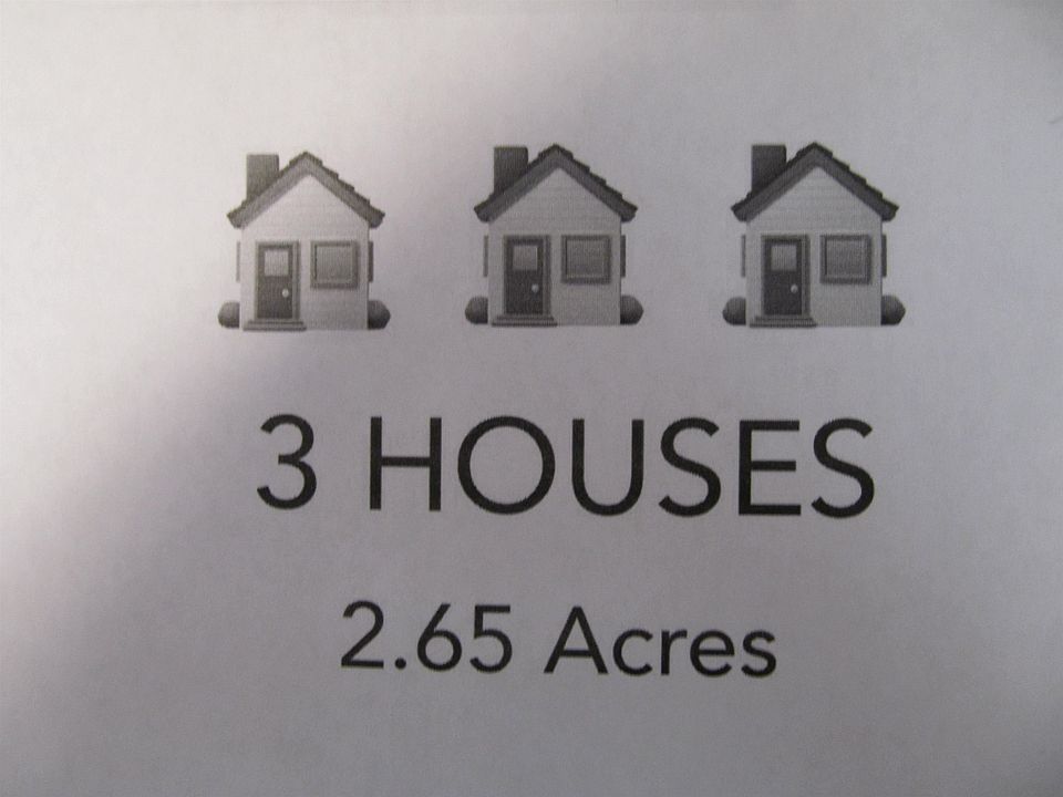 3 houses on one 2.65 acre lot! Per Chandler, size of each house is 1520/894/972 square feet. While they need work, 2 were recently rented and 1 has been partially renovated. Can be brought back to rent ready pretty fast. Lots of possibilities here- keep and rent, split up and sell, develop excess land in back, make extra lot up front and build. Very profitable venture for creative investor!