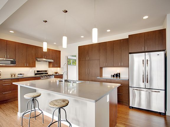 Brand new construction. Formal entry. High ceilings. Solid wood cabinets with self closing hardware. Quartz counters with tile backsplash and under-cab lighting. Large island with under-mount sink. Stainless steel appliances. Formal dining. Gas fireplace and all gas heating. Master bedroom with walk-in closet. Double sink vanities. Office and flex spaces. Full laundry room. Lower rec room or use as guest suite. Rear view deck with stairs to large fenced yard. Energy efficient. Two car garage.