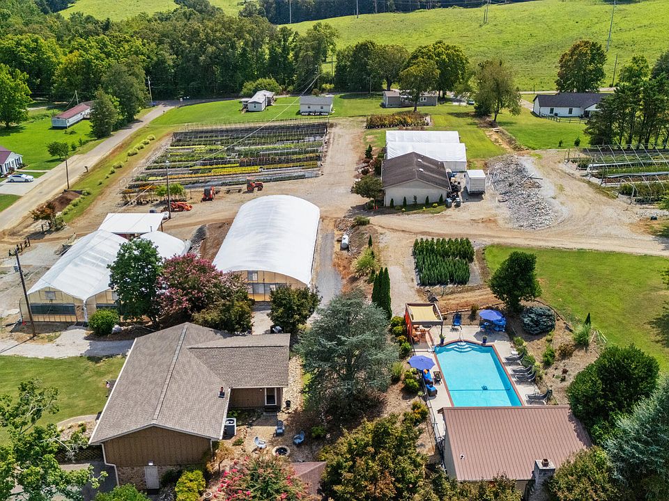 Discover a rare opportunity to own not only a beautifully updated home but also a turnkey wholesale nursery business that has served East Tennessee for over 40 years. This 3-bedroom, 3-bath ranch home offers comfortable living with a half-finished basement, a remodeled kitchen, a one-year-old HVAC system, and a three-year-old roof, siding, and gutters. Outdoor living is equally impressive with two entertainment areas, an in-ground concrete pool with pool house, and stunning views across the property's 16+ acres. The home is supported by two wells (public water available at the road), two recently serviced septic systems, and 144 solar panels that generate reimbursement credits through Knoxville Utilities Board.