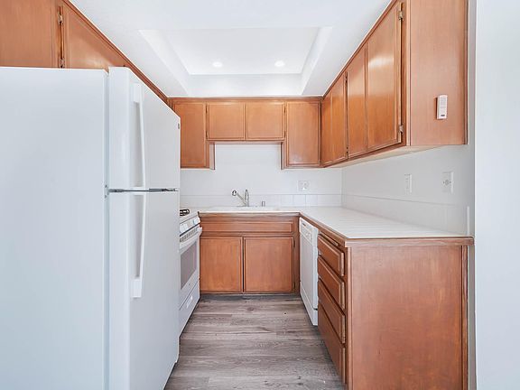 Available for private showings and virtual tours. Modern, bright, and spacious corner 2 Bedroom/2 Bathroom unit that is 1,075 sqft, has a large private balcony, a tile fireplace and central heat and air. Living spaces feature an open floor plan, new grey wood flooring, a ceiling skylight, and a modern ceiling fan/light fixture. Kitchen includes wood cabinets, new refrigerator, new stove, recessed lighting, and tile countertops and backsplash. Bedrooms are large feature new grey wood flooring and mirrored glass sliding doors. Both bathrooms are modern with recessed lighting, white cabinetry, stainless steel hardware, and full bath/shower set. Communal laundry room. Property is located centrally on the Westside in prime Palms. One garage parking space. 5-minute drive to Downtown Culver City, Mar Vista, Beverlywood, West LA, the Expo Line, and the 10 and 405 freeways. Enjoy a modern living experience in a gorgeous and spacious unit! Tenant pays for gas and electric.