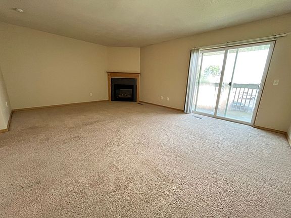 This 2nd floor apartment has its own private entrance and private walk-out balcony! The semi-open concept floorplan has a large living room with a gas fireplace and slideouts to balcony. The galley kitchen features fridge, stove, dishwasher, and microwave and a breakfast bar for extra seating. Stackable washer/dryer included! Large master bedroom connects to the bathroom which has lots of storage and a tub shower. Central heating/cooling and a single stall garage included with rent. There is also dog park for all of our pet owners!