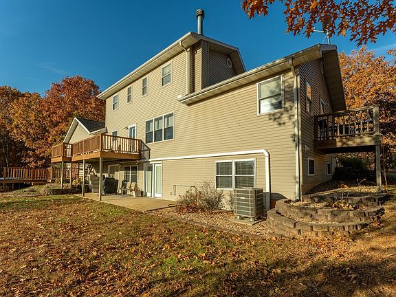Ozarks Country Home for Sale in Missouri. Are you looking for a home in the country with the convenience of being only a few miles from town? This Country Home is situated on 2.88 acres M/L near a golf course with a private setting on a dead end road. On the property, there is a large private pond that has been stocked with crappie, largemouth bass, red ear sunfish, hybrid bluegill and grass carp. The home offers 4 bedrooms, 3.5 bathrooms and 2 living areas for entertaining guests. The master suite on the main level boasts a walk-in closet, large tub, 2 vanities and a private deck overlooking the pond area where lots of wildlife can be seen such as deer, turkey, squirrels, birds, and other small game, along with all the beauty the ozarks has to offer. The home also features a walkout basement & an attached oversized two car garage with storage or extra workspace. You will love the granite countertops in the custom kitchen, the pantry, and the abundance of storage. The kitchen, open to the dining area, overlooks the pool and the Ozarks countryside. The entries high ceilings and spacious living room give the home an open feel. There are two bedrooms with walk-in closets and a bathroom upstairs. The basement has a spacious family room with a gas fireplace that could also serve as an office space. Also in the basement, you will find the fourth bedroom with full bath, spacious John Deere Room / Shop area / extra storage. There are several areas for entertaining outdoors including multiple decks with fantastic views of the Ozarks outdoors, a private pool, and a covered front porch. Property has NO RESTRICTIONS, and is located close to area rivers, streams, lakes and National Forest. This is a high quality, energy efficient home, with a newer heat & air unit and new hot water heater. Schedule your showing today.