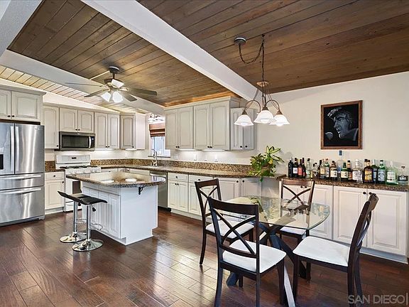 This beautiful 1960 mid century modern home was designed by famed architect William Krisel as a part of the Point Loma Estates. The open floorplan has updated flooring, a cozy fireplace for those rare cool evenings, open beam ceilings, a large skylight and lots of windows to make it feel airy and bright. The updated kitchen has newer stainless steel appliances, gorgeous granite counters, an abundance of storage and a convenient center island. The primary bedroom leads out to a peaceful outdoor patio, a perfect spot to enjoy the beginning or end of your day. Have we mentioned the back yard? An oasis of flowers, trees and shrubs with a charming waterfall as a focal point, this lot goes far beyond the fence line. Additional items to note: Upgraded electrical panel, Spartaflex flooring in the garage, laundry sink in garage, new interior and exterior paint, security cameras, newer windows and patio door, and more! Conveniently located to shopping, dining, freeway access and the beach, this amazing property is a must see.