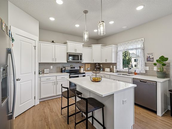 Ankeny Ranch • 0.9 mi to Costco • Quick I-35 access • Fenced yard • Finished lower level • Quartz kitchen • 5 bedrooms- Custom style meets comfort in this inviting 5-bedroom ranch designed for easy everyday living. The kitchen steals the show with white soft-close cabinets, quartz countertops, GE Slate appliances, tile backsplash, under-cabinet lighting, and a large island with pendant lights. The open layout connects the kitchen, dining area, and great room with a sleek 60” electric fireplace and floating shelves. Relax in the spacious owner’s suite featuring double sinks, a makeup vanity, and separate toilet room. The finished lower level adds generous space for gatherings with a family room, walk-up wet bar, two bedrooms, full bath, and storage. A drop zone with wood lockers keeps things organized off the 3-car garage. Outside, enjoy the 0.29-acre yard, fenced for privacy, with a cement pad and basketball hoop ready for play. Thoughtfully priced below the assessed value, this home offers strong potential for the next owner to personalize and build equity while enjoying a great Ankeny location close to shopping, parks, and easy interstate access.