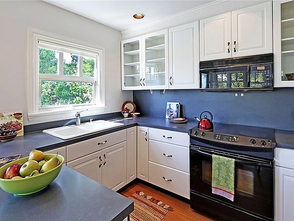 Charming house in Gatewood Community of West Seattle with partial sound and mountain views. Well cared for home with bright spaces, remodeled kitchen and new carpet (with wood floors beneath). Enjoy the sunny deck off the kitchen with Small sound view, and additional view potential. Lovely fenced yard with fruit trees, and garden space. Shared garage, convenient location, and quiet lovely street.