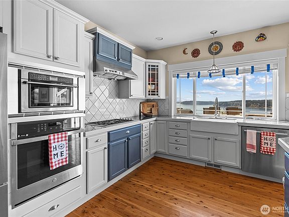First time on the market! Custom 5BR, 5BA farmhouse on a beautifully landscaped, level 1/3-acre lot on desirable Tahoma Place West. Enjoy commanding views of Puget Sound, the snow-capped Olympic Mountains, and Fox Island—from soaring eagles to passing orcas. The inviting great room features Australian Cypress hardwoods, ideal for entertaining. The finished lower level offers an entertainment area, hobby/sewing room, home gym, wine chiller, ice machine, and walk-in cooler. Step outside to a spacious patio surrounded by new articial turf & putting green. Detached 3-car garage includes a professional-grade office and half bath. Walk to UP Town Center, Curtis High School, and Chambers Bay. Save Thousands Owner Financing offered!