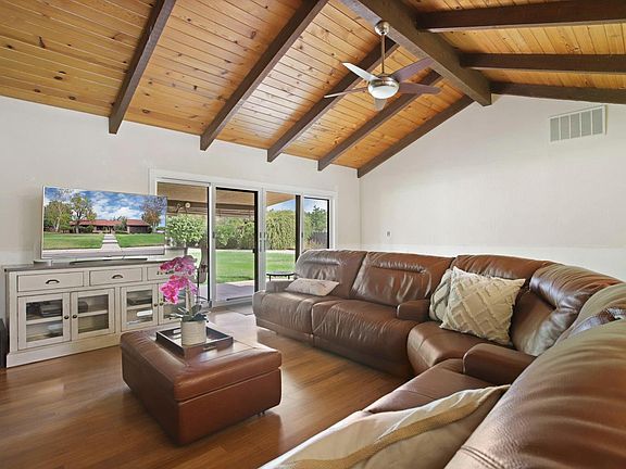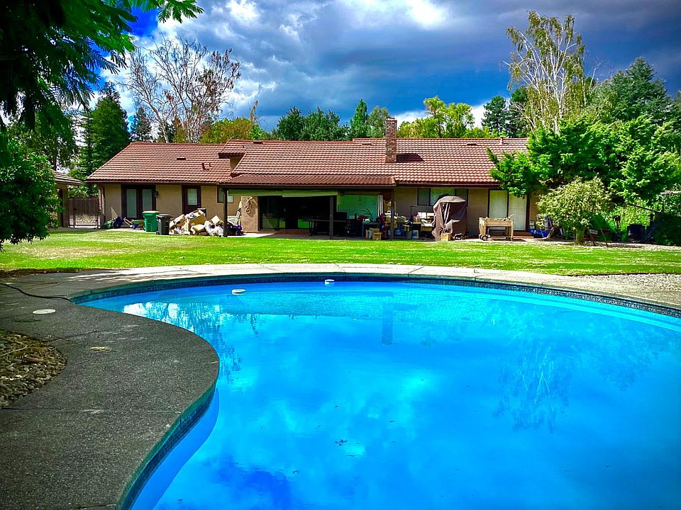 A Rare GEM, Spectacular LOCATION! 3-4 Bedroom, 2 1/2 Bathrooms, Extra room Den/Office, 2 Fireplaces Huge Wall brick Fireplace in oversized SUNKEN Family Room, 2 minutes to Hi-99. IDEAL for Commuters. I invite you to Step into a world of privacy, tranquility. Where your dream home awaits. Discover your sanctuary, nestled in a highly coveted location, offering an intimate and private setting. Be captivated by the serene, parklike backyard, a Zen-inspired haven featuring a sparkling pool perfect for moments of relaxation and joy. Warm your evenings by two fireplaces, including a luxurious one in the master bedroom, evoking cozy, unforgettable relaxing evening. Extra room with it's and sliding doors for private access. Idal for older children, or as a rental. Opens to endless possibilities for entertainment or quiet retreats. Has 4 car garages 2 detached. Fruit trees, garden area. back patio, upgraded Kitchen 2 years Quartz counter tops. High end appliances, indoor laundry room. and much, much more. This is a rare opportunity for buyers to claim a slice of paradise in a home that blends country living with soul-soothing charm. Join us to explore every breathtaking detail and envision your future in this
