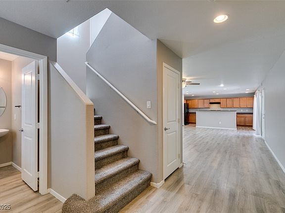 Look no further & welcome home! Charming and functional 3 bed, 3 bath home located in the heart of Lone Mountain! This well-maintained home features no carpet throughout, perfect for easy cleaning and a modern touch. The spacious layout includes an open-concept living area and a stylish kitchen with ample cabinet space. Upstairs you'll find generously sized bedrooms, including a bright primary suite with a large walk-in closet and private bathroom. Enjoy a low-maintenance backyard with synthetic grass, perfect for relaxing or entertaining without the upkeep. Located in a gorgeous community offering amazing amenities including a sparkling pool, spa, park, and playground. Just minutes from hiking trails, shopping, dining, and freeway access. This home blends comfort, style, and location. Do not miss this opportunity, call us today!