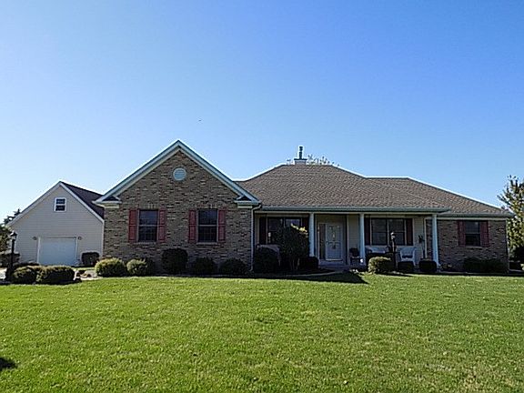 Like new perfectly kept Ranch style home situated on 1 acre with nicely landscaped property north of Ottawa in Crooked Creek Development. Open floor plan has Great room with brick fireplace, formal Dining room, spacious Kitchen with oak cabinetry, tile back splash and breakfast nook. Master Suite has sitting area, private bath with double sink, whirlpool and separate shower, his & her's walk in closets and more. 1st floor laundry. 26x31 Rec Room in the lower level. Covered rear patio and stamped concrete patio area. Great property plus a 24x26 Custom built detached garage/work shop with gas heater, 220V electric, and floored loft for storage!