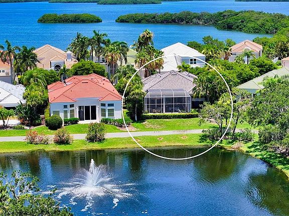 One or more photo(s) has been virtually staged. Situated in the highly sought-after maintenance-free community of Queens Harbour, behind the gates of Bay Isles, this updated lakefront home perfectly captures the ease of Florida living. A 2023 tile roof adds peace of mind, while a smart split floor plan includes three en-suite bedrooms, a half bath, and a versatile den/office that can serve as a fourth bedroom. The interiors feel bright and welcoming with 12–15’ ceilings, neutral tones, and elegant architectural details. New wood-look porcelain tile flooring enhances the living room, dining room, den/office, and first-floor bedrooms, combining durability with style. The kitchen features stainless steel appliances, a center island with second sink, updated hardware, and a breakfast nook with bay window views of the pool and lake. The primary suite enjoys direct lanai access, tranquil water views, and a spa-like bath with dual vanities, soaking tub, and walk-in shower. Outdoors, the screened lanai offers a heated pool and spa with a peaceful lake backdrop, plus a refreshed covered sitting area with a new tongue-and-groove ceiling and accent wall—perfect for relaxing or entertaining year-round. Residents enjoy exclusive access to the Bay Isles Beach Club, with its private beachfront, cabanas, and members-only amenities, along with optional memberships for golf, tennis, and the Harbourside Marina with deepwater slips. This home sustained no hurricane damage or water intrusion. This is Longboat Key living made simple—beautiful, low-maintenance, and ready to enjoy.