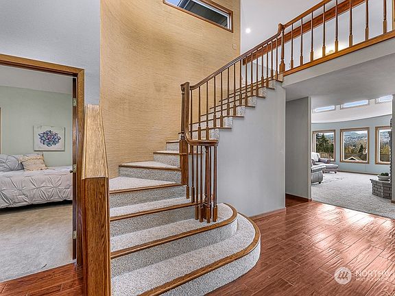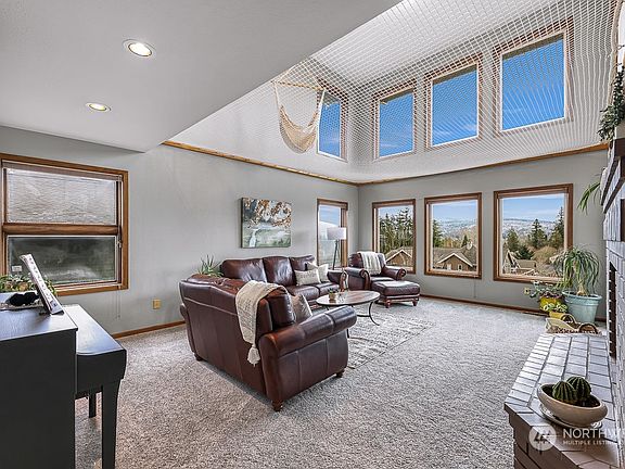 This beautiful home has it all! Amazing views from nearly every room, vaulted ceilings, updated kitchen, brand new primary bath and walk-in closet. Great location in the desirable Big Rock Estates neighborhood. The south facing decks are a great place to take in the sweeping territorial views and a peekaboo view of the bay! Space and storage abounds in this 4 bedroom home with many walk-in closets and spacious lower-level family room. The walk out basement has a beautiful kitchenette, 9' ceilings, 2 bedrooms, and a full bathroom. Beautiful plant room off the kitchen has so many potential uses. Boat netting installed as a fun way to relax and enjoy the vaulted ceiling space. Close to many trails and parks. Come see this great home!