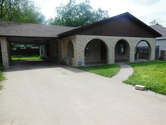 Great starter home or Investment home! 2 bedroom, 1 bath, Needs a little work but some updates have been made! Ceramic tile and carpet throughout. Nice gas stove, updated kitchen cabinets and large backyard.!Front yard is fenced in with iron and brick fencing. Extra long driveway has covered parking and long covered front porch has decorative arches. Roof installed two years ago. Updated plumbing. HVAC installed two years ago. Come take a look!