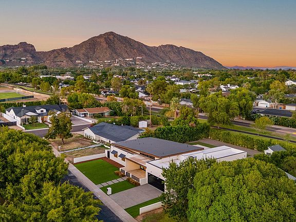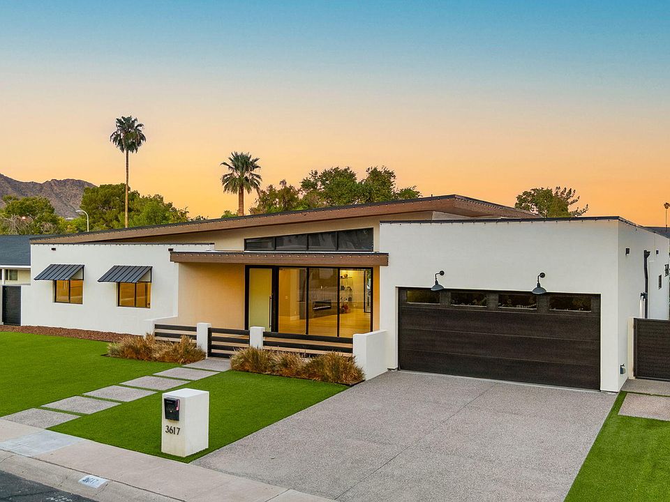 Built in 2021, this minimalist home stands out in a sea of modern farmhouse design. Features include a shed-style roof, soaring ceilings, floor-to-ceiling fireplace, wood floors, new carpet, retractable doors, motorized shades, and custom cabinetry. The kitchen offers professional-grade appliances and abundant storage. Primary suite is a private, light-filled retreat. Set on a large, private lot with heated pool and spa and space for an accessory dwelling—come experience modern living done right.