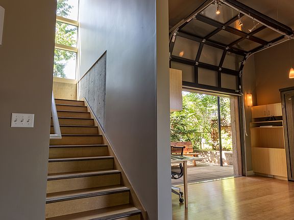 Dardis-designed CONTEMPORARY w/wheatboard & bamboo flooring & cabinetry, radiant heat. Soaring windows/ceilings. Flexible floor plan for live/work or sep living. En suite master, 3 glass garage doors, 3 balconies. 3rd floor library w/mtn views. Pull-down bed/table maximizes space. Rais fireplace. Expansive storage. Architecturally designed courtyard oasis. NEW exterior paint. 1/2 block to Fremont. Grant schools.