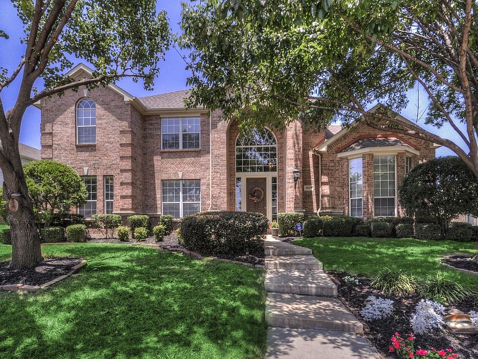 Welcome to stunning updated elegant open & bright 5 bedrooms, 4 bathrooms, 3 living areas, 3 car garage home in prestigious sought after Spring Ridge Subdivision offering exemplary Skaggs Elementary School and Rice Middle School. Master bedroom & guest bedroom with bathroom down, game room, 3 more bedrooms and two more bathrooms up. The two story grand entry & exquisite 2013 wrought iron staircase welcomes you into this impeccably maintained home offering formal living room with crown molding and bay windows, formal dining room with crown molding elegantly appointed, a perfect setting for entertaining. Spacious two story high ceiling family room featuring an elegant double stacked mantel & gas logs fireplace with wall of windows and is also open to updated gourmet cook's delight kitchen. Counters are adorned with 2013 granite & tumbled marble backsplash, an abundance of 42 inches cabinets, 2013 stainless steel appliances including double ovens, gas cook top vented out, microwave, dishwasher & a walk-in pantry. Escape to luxury in secluded large master retreat offering a sitting area, bay windows, tray ceilings & luxurious updated 2015 master bath featuring jetted tub, dual vanities with granite countertops, separate shower with seamless glass door & a large walk-in closet with built-ins. Other amenities and upgrades; 2016 engineered wood in entry, formals & family room, 2016 carpet, 2014 roof, 2014 A/C's ( 16 Seer), 2016 B.O.B cedar fence with steel posts, sprinkler and security systems, 2014 gas hot water heaters, 2012 upgraded light fixtures and ceiling fans, abundance of natural lights, 2013 exterior paint, wonderful community with pool, park and playground, convenient to The Shops at Legacy shopping and dining, 121, Tollway and Hwy 75, A True Gem!, much more, won't last!