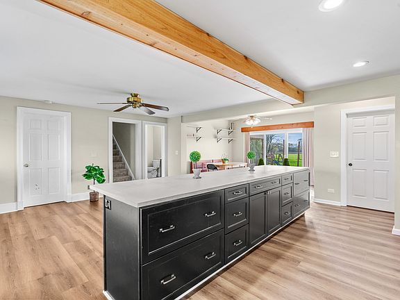 5.27 acres with a Brand New Addition!! BRAND NEW ADDITION ADDS 1,100 SQUARE FEET TO THIS AMAZING NEW HOME! DON'T LET THE SIDING STOP YOU, THE SELLER'S HAVE A QUOTE TO GET IT PAINTED ONCE THE WEATHER CLEARS UP & GETS WARM ENOUGH. So much New: Brand New Kitchen with all New Appliances, Concrete Countertops, and a Huge 12' Island. Roof, Windows, 22' x 30' Patio, Paint, Flooring, HVAC, the Water Heater, the Laundry room, upstairs Playroom, and 3 New Bedrooms along with the 2 other previous bedrooms AND a new 9 foot Slider in the dining room. Outside: U shaped driveway, 2-3 car garage, storage container unit, playground, 2 chicken coops, hay field, and pasture areas. Connected to Nicor gas! New Well Tank! Septic pumped 6 months ago.
