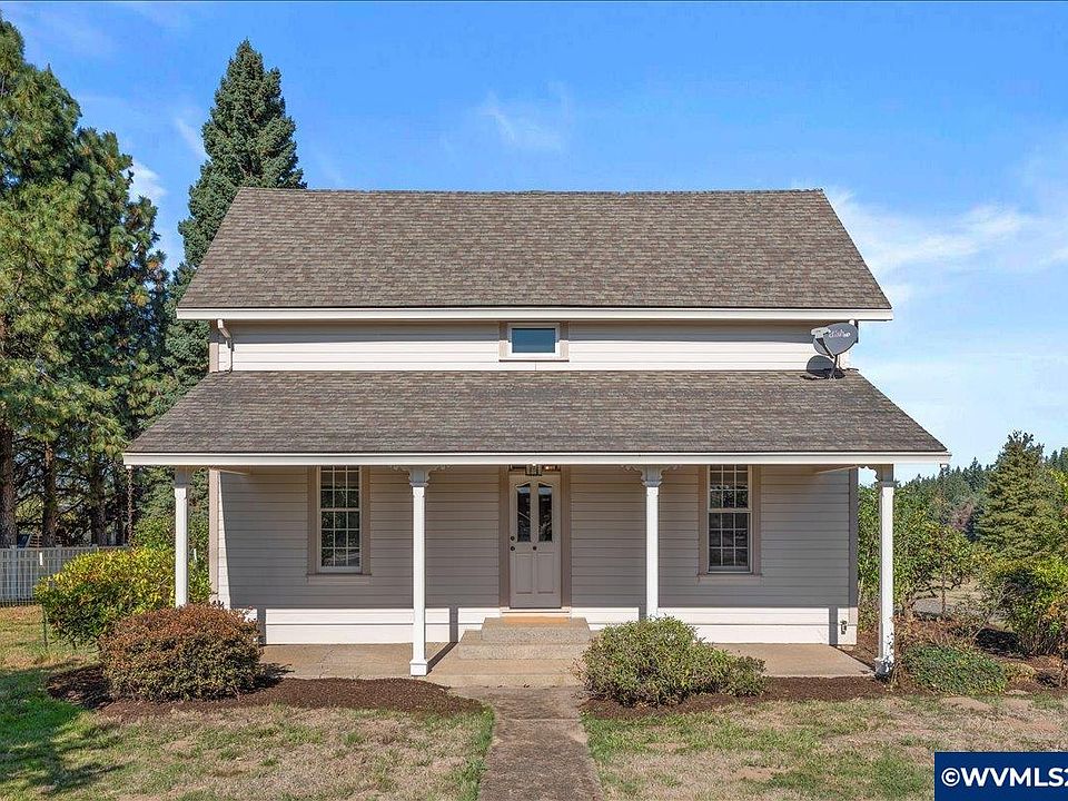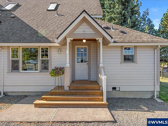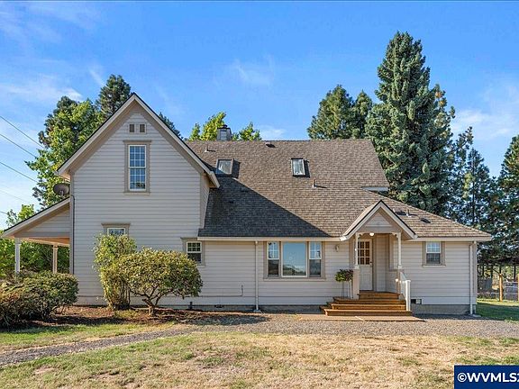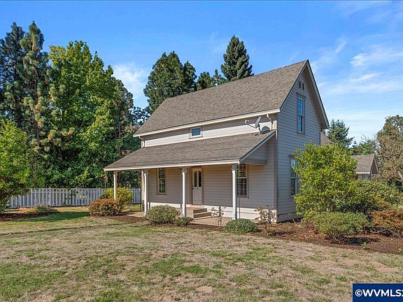 This charming 4-bedroom, 2-bathroom farmhouse is situated on a picturesque 2 acres in the Silver Fall School District. Spanning 2,294 square feet, this home beautifully combines timeless character with modern comforts, featuring original shiplap, stunning hardwood floors, and a cozy new fireplace. The main floor has new flooring and a fresh coat of paint, enhancing its appeal. Additionally, there's a magnificent barn with a loft. The flat, usable acreage includes fruit trees berries, grapes.