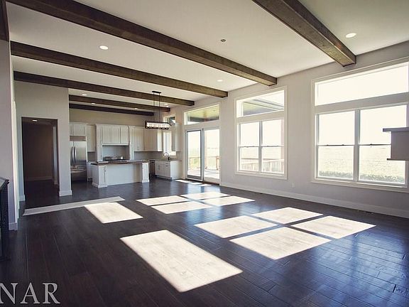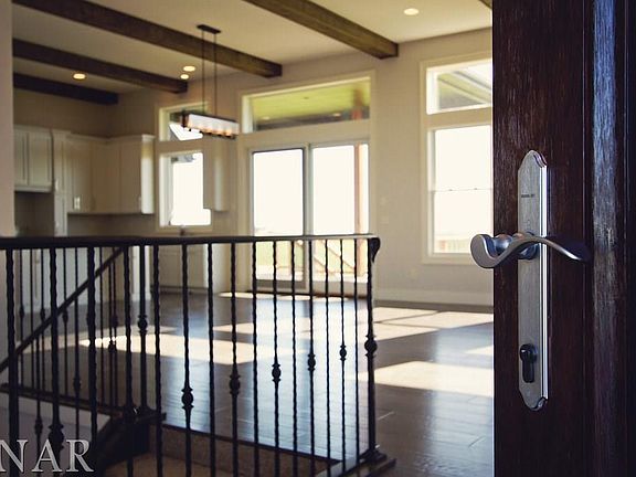 Fantastic new ranch plan with walk-up Bonus Room in the upscale Trails on Sunset Lake! Open and spacious Living Area has 10 ft ceilings with hand crafted beams, gorgeous hardwood flooring and expansive views of the tranquil countryside. Chef's kitchen has top line appliances, custom made Amish cabinets, granite and hardwood tops, stone backsplash and enormous walk-in pantry. Huge covered porch overlooks large yard with no backyard neighbors. Fabulous Master Suite with custom bath and beautifully outfitted closet. Two other bedrooms on main share an AWESOME Jack & Jill; luxe powder room for guests! Bonus room on 2nd floor is the perfect guest suite or private retreat. Full finished basement with lookout windows, huge family room, handy wet bar and 5th bedroom. Custom trim, quality construction and outstanding service.