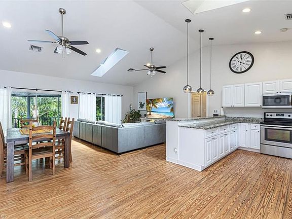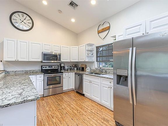 Welcome to this very unique property in a prime Naples location! This charming two-story home offers 4 bedrooms, 3 full baths, and approximately 1,601 sq. ft. of well-designed living space on a beautifully landscaped 0.23 acres lot. Step inside to a bright, open layout featuring a spacious great room with vaulted ceilings, wood and tile flooring, and built-in cabinetry. The main kitchen is equipped with a walk-in pantry, electric cooktop/range, microwave, dishwasher, disposal, and refrigerator. In addition, this home features an extra kitchen and an extra guest room with an office downstairs — perfect for extended family, guests, or a private workspace. Upstairs, the private master suite offers peace and privacy with a well-appointed bath featuring dual sinks. Two additional bedrooms and a full bath on the main level provide flexibility for family or visiting guests. Outdoors, the home backs to a lush wooded area with great privacy, ideal for morning sun and quiet relaxation. Additional highlights include a metal roof, two-car attached garage, central HVAC, ceiling fans, and pre-wired cable. Located in a highly desirable area, this home is biking distance to the beach, shopping plazas, and dining, and less than 10 minutes to Waterside Shops and 5th Avenue South. Enjoy incredible value with low maintenance fees under $150/month, which include landscaping and irrigation—with no hidden fees or special assessments. This is a rare opportunity to own a versatile and distinctive residence in one of Naples’ most convenient and sought-after neighborhoods—perfect for families, seasonal residents, or anyone seeking a flexible living space close to everything Naples has to offer.