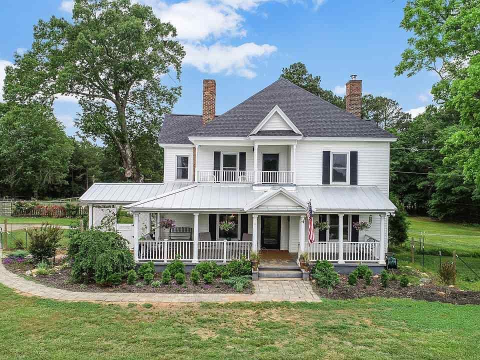 Ready for your own little slice of farm life? Rich in history and features, this GORGEOUS farmhouse on 3.62 Acres is only minutes from Downtown Fountain Inn and Fairview Rd shopping. History galore, with all the modern updates. Bring your horses, goats, cows-the chickens are already here. Pastures, fruit and nut trees, grape arbor, vegetable garden-everything is in place for a small homestead. Wonderfully renovated Farmhouse on 3.62 Acres only minutes from Fairview Road shopping. Recent updates include: Brand New limited lifetime warranty Roof, 3 stall barn with tack room and 100x130 riding ring, barn with tack room and loft. Recent updates include: Brand New limited lifetime warranty Roof, 3 stall barn with tack room and 100x130 riding ring, Energy Ecient Windows, Electrical, Plumbing, Kitchen, Light Fixtures, Interior Paint, Tankless Water Heater, Fencing, Bathrooms, honeycomb tile floors, and more. The Tongue and Groove ceilings, Original Pine Hardwood floors and 8 Fireplace Mantles showcase the Craftsmanship of yesteryear. Spacious Dining Room, Living Room, and Great Room lead into the Renovated Kitchen. The Kitchen features Granite Counters, Updated Custom Cabinets, Tile Backsplash, Frigidaire Professional Stainless 5 Burner Gas Range with Electric Pop Up Downdraft, Convection Wall Oven and Microwave, Wine Rack, and LG Dishwasher. The First Floor Master Suite Features Recessed Lighting, Walk In Closet, and a Master Bath with new Tile Floors, Tile Shower, and Jetted Tub with Tile Surround and Double Sinks. Also located on the main level is a Half Bath with tile Floors and Pedestal Sink, and a Spacious Mud/Laundry room. Another full Master Suite is upstairs, along with two additional bedrooms, a study with balcony, and another full bath. Fully fenced and cross fenced, with automatic gate. This kind of charm can only be experienced.