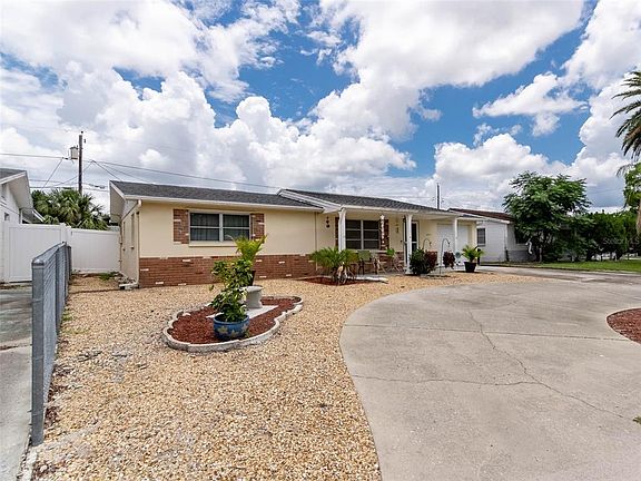 This open concept 2 bed, 1 1/2 bath is the perfect starter or Investment home. Look forward to entertaining family and friends in the huge privacy fenced backyard of this well-maintained home, where the circular driveway gives plenty of room for extra parking. This tastefully decorated home benefits from a good sized living room, large eating area next to the kitchen, and a large family room at the back of the home overlooking the garden. The sizable sunroom is and screened in porch are perfect for Florida living. The kitchen features white appliances, smooth top stove, oak cabinets and kitchen island. The 2 bedrooms will take your biggest furniture with room to spare, and both have generous closets. In the garage you will find the 'gardeners bath', handy for guests or for you, washing up after a day in the garden.The garage itself is oversized, and has lots of storage space. Enjoy low maintenance ceramic Tile flooring throughout the home. Washer and dryer hookup located in garage. Convenient access to shopping and beaches.