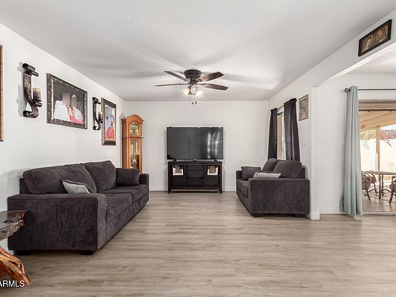 Fantastic opportunity to own this charming single-level home! Offering 3 beds, 2 baths, a 2-car garage, an RV gate, and a mature landscape. The inviting interior showcases a seamlessly flowing layout paired with abundant natural light, a neutral palette, and wood-look flooring throughout. Sliding doors merge the inside & outside activities! The kitchen boasts SS appliances w/range hood and ample counter & cabinet space. The double-door primary bedroom has a walk-in closet and a private bathroom for added comfort. Check out the backyard, providing a covered patio and storage shed! With your creative ideas, you can make it a complete outdoor living space. Great Phoenix location close to schools, shopping, dining options, entertainment, and easy access to 101 Fwy. Don't miss out on this gem!