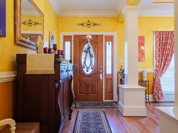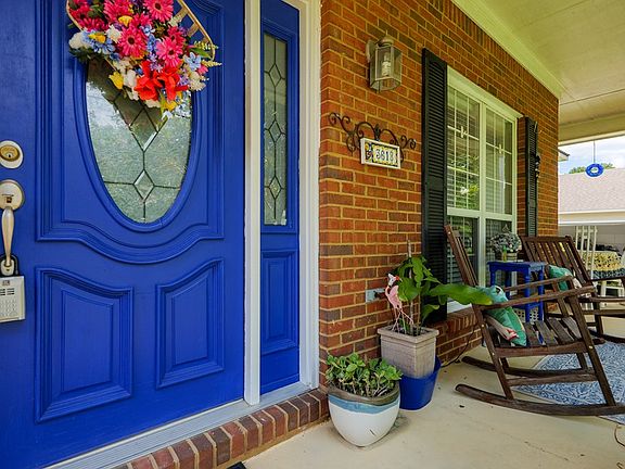 Classic and inviting! Beautifully landscaped front yard welcomes you onto the airy front porch, opening to lovely oak hardwood floor in the large foyer and formal dining room. The trey ceiling continues into family room and master. Comfortable, spacious family room features gas log fireplace and floor to ceiling windows - a perfect space for surround-sound and big screen possibilities. The large, bright kitchen features light cabinetry, with black and stainless appliances, French-door refrigerator, and a butcher-block portable island will remain. The counter/bar opens into the family room, with a cozy breakfast area, which overlooks the inviting backyard retreat. The master bedroom is generous, with ample walk-in closet, double vanity, separate shower stall, and relaxing Jacuzzi tub. The other three bedrooms/study and shared bath, are separated from the living space by a pocket door, providing an efficient layout and privacy. Sizeable laundry room with washer and dryer (will remain) can be also used as a craft/storage area. The gunite built-in pool (which lights up) is the center of this expansive fenced yard. Established plants include: three varieties of figs, pomegranate tree, kumquat, roses, Maximillian sunflowers, Aloe, pinecone lilies, Russian sage, rosemary, and shrimp plants. The yard is complete with large patio, gazebo, and plenty of grassy areas for fabulous, year-round outdoor entertaining and birdwatching! Hand-painted walls throughout adds a designer feel to this wonderful home. Call today to set up a showing!