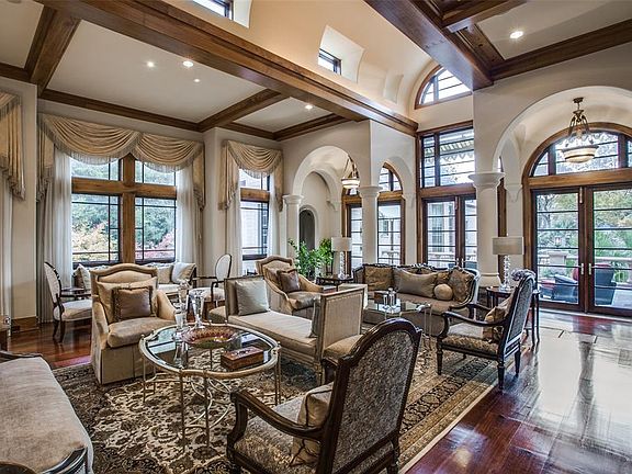 Situated on one of the largest lots in HP overlooking a picturesque greenbelt, the 110x305 corner lot named Coram Deo is an architectural masterpiece showcasing an exquisite granite exterior. The Richardsonian Romanesque, U-shaped manse surrounds 2 breathtaking swimming pools with waterfalls & offers 3 stories, a dramatic entry, exquisite formals, 14ft beamed great room, chef's granite kitchen, breakfast area, library, theater, office, guest suite, playroom, nursery, family, game, billiard & wine rooms, luxurious master with a dome ceiling, sitting area & granite bath, elevator, 7 fireplaces, 4 balconies, 2539 SF of verandas, 2 2-car garages & a full wellness center overlooking the pools & landscaped grounds.