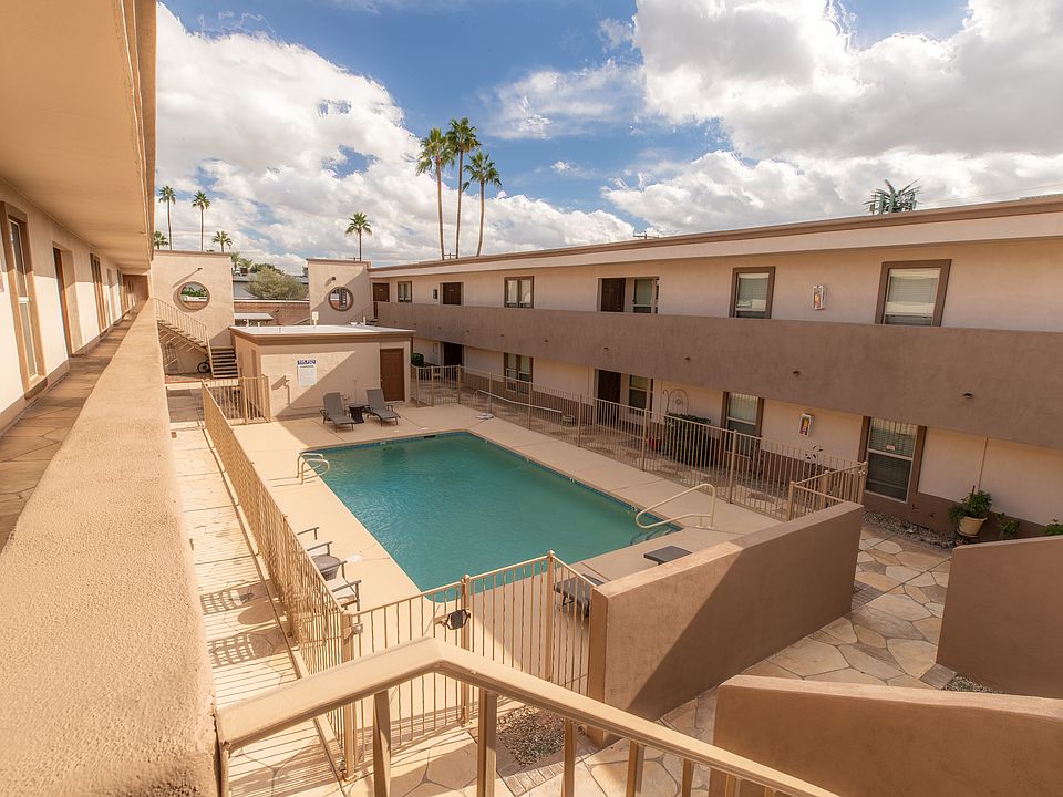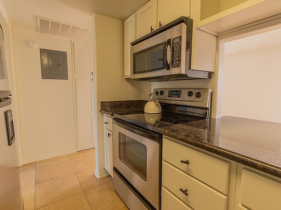 Welcome to your turn-key home in the beautiful Arcadia area. This is a perfectly renovated modern condominium in a private gated community with one bedroom and one bathroom. Inside you have a modern remodel with wood floors and granite counters, modern light fixtures and a large private bedroom and bathroom. An in unit washer/dryer as well. Outside there is a beautiful rectangle pool, laundry room and fire pits.