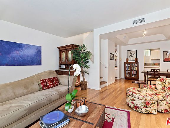 Located in the sought after Culver City Adjacent neighborhood, this dramatic two bedroom, two and a half bath townhome is nestled in a small six-unit complex. Open living room w fireplace/dining area with a bar are perfect for entertaining! Bright kitchen has contemporary counters, brand new stove, and a spacious laundry closet, and a breakfast area. The unit has been freshly painted, refreshed for selling w hardwood floors, bathroom shower doors, some fixtures and closet organizers. One can enjoy a cozy patio off the living room with a fountain, as well as the privacy of the roof top deck, the beautiful sunsets, and a view of the Hollywood sign to the east. Culver City's entertainment and technology hub, bustling downtown restaurant/theater district, and proximity to Expo Lines make this a very much in demand property! Low $350 dues, Self-managed HOA, two side by secured parking places, and new security entrances to complex complete this special offering!