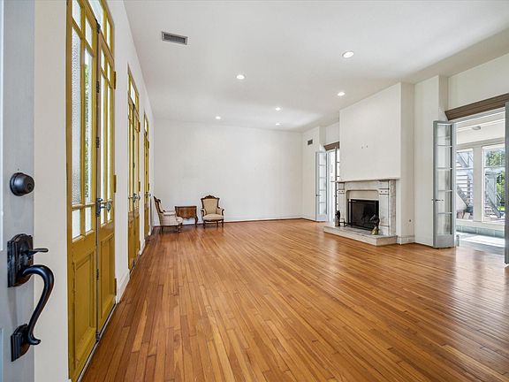 Incredible Tabby Shell Stucco home w/ unsurpassed architectural interior elements on rare sought after double lot, 15,000 sq.ft., on Cul-de-sac street w/ walking cross-over bridge to parks, school, Tiny's restaurant & Little League. Huge living room w/ fireplace, family room w/fireplace overlooking fountain & pool, enormous kitchen w/ huge dining area & cozy fireplace, beautiful covered patio w/ wooden vaulted ceiling & pass through to kitchen, downstairs bedroom w/ full bathroom, also 1/2 bathroom down, 3 large bedrooms each w/ full bathrooms up, huge primary bedroom w/ 3 closets & wonderful large primary bathroom, complete guest house w/ living room, kitchenette & full bathroom w/ tub & walk-in shower, oversized 2-car garage, separate workroom, pool 1/2 bathroom w/ shower & toilet, bonus room by pool for office space or exercise room, abundance of green space for children & pets. An incredible floorplan w/unique architectural features rarely seen in most homes. NEVER FLOODED
