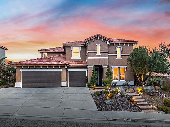 Location, Views, and Much More! This Beautiful home offers 5 bedrooms, 3 bathrooms, an in-ground pool/spa with over 2,900 sqft of living space, nestled in a desirable Rancho Vista neighborhood! This home has a three-car garage, is on a great-sized lot, and has an entertainer's backyard with beautiful views/sunsets of the Antelope Valley! As you walk up the custom-stamped stairs into the house, you are greeted with high vaulted ceilings, large windows that allow abundant natural lighting, a large dining room, and a generous-sized living room. The spacious kitchen is upgraded with granite countertops, backsplash, stainless steel appliances, recessed & pendant lighting, a nice-sized pantry, plenty of cabinet/countertop space for all your needs, and upgraded luxury vinyl plank flooring downstairs. The kitchen offers an open floor plan to the family room, perfect for hosting guests. The family room is a nice size and offers a fireplace for the cold winter months! Brand new carpet installed upstairs and in all bedrooms! All bedrooms are spacious, and one bedroom is conveniently located downstairs! The Master bedroom is large and has a huge walk-in closet. The backyard offers a tranquil environment with a large pool, spa, covered patio, built-in BBQ, grass, concrete, and a beautifully landscaped hillside. This home is close to Rancho Vista Golf Course, Marie Kerr Park, shopping centers, restaurants, excellent schools, walking trails, and a straight shot to the freeway for commuters. Did I mention the awesome fireworks show you will get on the 4th of July from the comfort of your home? Come view this beautiful pool home today, as it won't last long!