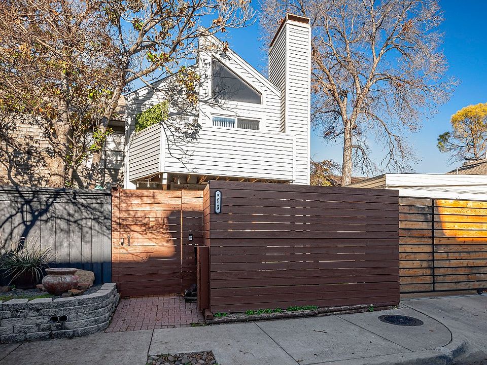Fabulous Townhome Half Duplex with NO HOA and a beautiful front yard with patio and attached garage and carport! This 1 bedroom with an office can easily be converted to a 2 bedroom (at owners expense with a strong offer) and is within walking distance to Turtle Creek, Katy Trail, shopping and dining! Electric gate to enter the secured parking front yard area that has artificial turf and a covered patio. There is also a spacious storage unit located on the front patio. Enter into the living room area complete with laminate wood flooring, electric fireplace, many (energy efficient) windows, wood ceiling, half bath, kitchen and dining area. The kitchen is complete with a Viking cooktop, double oven, tile flooring, large pantry, windows, granite countertops and an abundance of cabinets. The beautifully painted wood stairs lead to a gorgeous vaulted ceiling bedroom and office area complete with hardwoods, a loft area with book shelves, a large balcony, beautiful master bath.Drawing in TM.