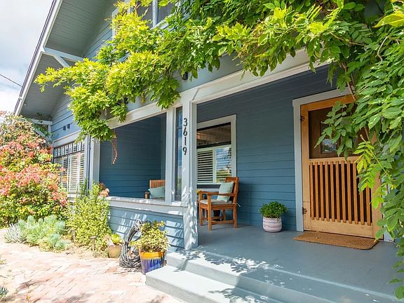 This beautifully designed and restored 1917 front gabled Craftsman house is located in the heart of the desirable North Park historic neighborhood within easy walking access to Balboa Park and North Park center. The house is a classic example of timeless and enduring Craftsman design with many recent upgrades including owned solar panels, new roof, refinished oak hardwood floors, new foundation, recessed lighting and sound system, custom window shutters, updated kitchen and bathrooms, full house fan, and mature drought tolerant landscaping with lime, pomegranate, plum and olive trees. This charming home has 1865 sq ft of living space with an additional 450 sq ft extraordinary second floor bonus room, totaling 2,317 sq ft overall. The house features two downstairs bedrooms and a marble tiled bathroom, and an additional second floor bedroom plus living space with ample eaves storage. The large open living room accessed from a generous front porch has original Craftsman cabinetry and cross-beamed ceiling, wood burning stove, and built-in bookcase. The kitchen features subway tiling, a soapstone counter and shaker wood cabinetry. French doors in the dining area lead to a secluded, fully fenced backyard with a reclaimed brick patio, two storage sheds and custom fire pit. The stunning fully permitted 525 sq ft cedar clad rear accessory building with master suite boasts 12 ft ceilings, rooftop access with great views, and full bathroom, and is easily convertible to an ADU. There is also potential for the house to be eligible for the Mills Act that incentivizes historic properties