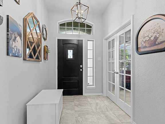 Beautiful single-story home in McCrary Meadows! Outstanding schools for all ages! Huge private lot, amazing extended covered patio, stone & brick elevation, sprinkler system, Energy saving home & more! Grand entry with high ceilings, upgraded large tile floors & stunning light fixtures throughout! French glass doors open to the Home Office! Gourmet kitchen has gorgeous granite countertops, Tall white shaker cabinets, Undermount lighting, tile backsplash, stainless steel appliances, 5 Burner gas range, large eat-in island and flows into the casual dining area & large family area that boast high ceilings, wall of windows looking out to your private backyard. Private primary suite with lush carpet, high ceilings, spa-like bathroom with his and her private sink vanity, deep soaker tub, shower, walk in closet & more! 2 large guest bedrooms & a full bathroom! Resort-style pool, Expansive playground, Tennis courts, & more! No flooding during any of the storms. DOES NOT REQUIRE FLOOD INSURANCE