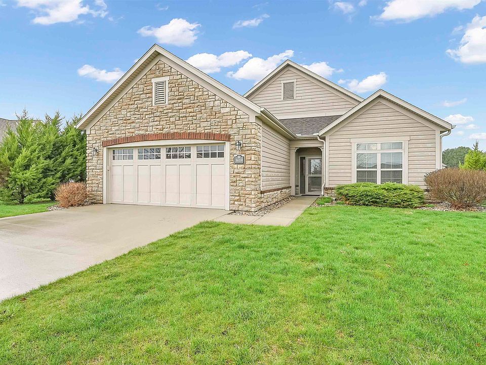 Welcome to your new home! This home has everything you need for comfortable living: zero-entry access, a two-stall heated garage, and a charming 4 seasons room for year-round enjoyment. The primary suite features a walk-in shower and a spacious closet, while the kitchen boasts a quartz island and lots of cabinet space. Outside, there's a stamped concrete patio for outdoor fun, and inside, a large utility closet keeps things tidy. Plus, the living room offers wood shelves and a gas fireplace for cozy nights. Don't miss out on this gem! Offers to be reviewed on 04/22/2024.