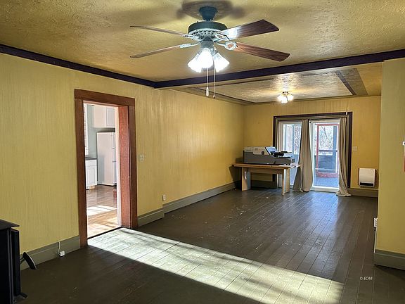One of a kind 108 year old house that has been updated and is very cool.... Upon entering the front foyer, you will fall in love with the uniqueness of this home. A wall mural runs the length of the hall that takes you into the dining/family room. The beautiful white cabinets, stainless steel appliances and the pewter tiled ceiling make the kitchen pop!!! Original wood floors have been painted but could easily be striped and stained. 2 bedrooms and bath/laundry are on the first floor.. Wood stove in the living room will keep you toasty all through the winter. Upstairs there a 2 bedrooms and 1 bath with a nice tub. Big walk in closet. The home sits on a large lot that is completely fenced. Dog run area is fully enclosed. There are many perennial flower and bushes, along with a cherry, apple and pear trees. Old cabin makes for a great storage unit. Lots of room to build a shop. The screened in porch has plenty of space to relax on warm summer nights. There is a front deck and side deck... So many wonderful features. Don't forget to look for the cute hobby room downstairs.... Plumbing & electric have been updated...