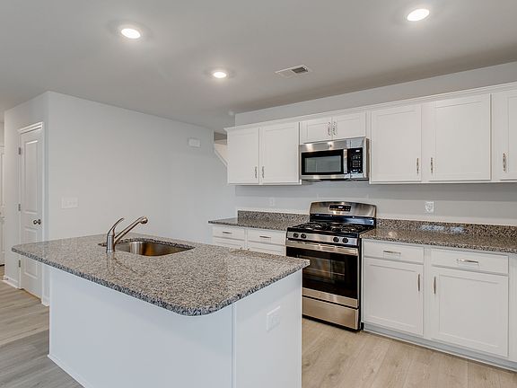 The Pickens is a four bedroom, two-and-one-half bath plan. The main living areas have luxury vinyl plank flooring. The kitchen features stainless steel appliances, upgraded white cabinets, and beautiful granite countertops. The open concept from the kitchen to the great room is perfect for entertaining guests. The primary suite is conveniently located on the main level. The primary bath offers dual sinks and a large tiled shower. Three secondary bedrooms, one secondary full bath, and a loft await upstairs. This home also boasts a large floored storage area. Enjoy the peaceful yard from your rear covered porch!