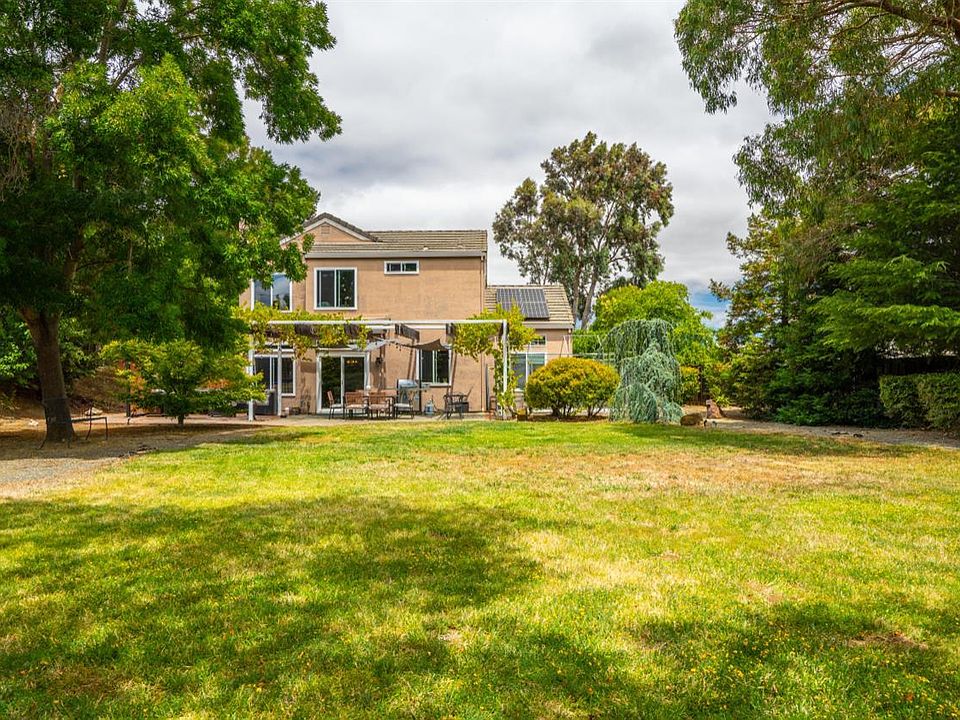 Beautiful 4 bedroom, 3 bath home on an expansive 18,000+ sq ft lot backing to open space! One bedroom and full bathroom downstairs. Vaulted ceilings in the living and dining rooms, with wood and tile flooring throughout most of the home. The family room features a cozy fireplace, and the kitchen offers granite countertops, a large island, tile backsplash, abundant cabinetry, and a sunny eat-in areaperfect for daily living or entertaining. The spacious primary suite includes a sitting area, high ceilings, walk-in closet, and an en suite bath with a deep soaking tub. Enjoy central heat & A/C, ceiling fans, and owned SOLAR for energy efficiency. The huge backyard, with mature landscaping, offers space, privacy, and potential for future projects, and includes a trampoline, dog kennel, and shed. Located near parks, schools, and a short drive to Benicia's vibrant First Street shops and dining.