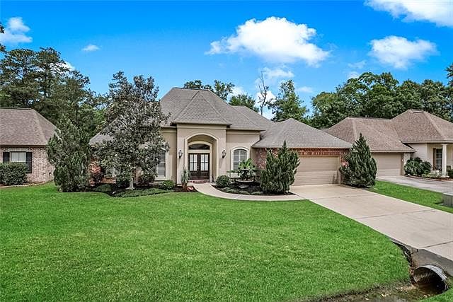 Immaculate French-country-style home in sought after Northshore high school district! Fall in love w/ the double oak-door entry, gleaming hardwoods, lofted den & floor-to-ceiling windows across the back wall. Everyone to the kitchen there's expansive granite counters, center isle, stainless appliances, high-top breakfast bar + dine-in space for a full-size table. The back patio's a sanctuary: covered pergola, brick pavers, gorgeous water view. Mere miles to Pearl River Wildlife Area.