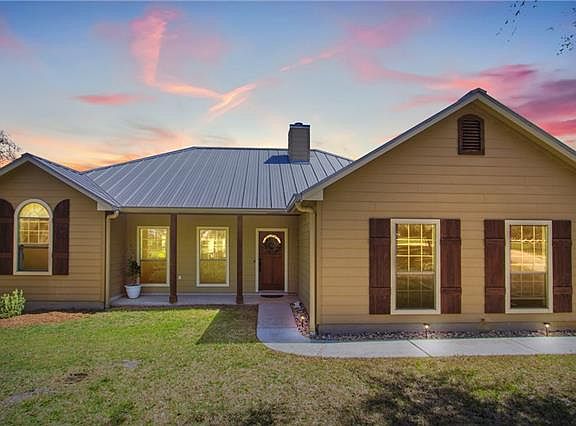Beautiful and well maintained custom built home by Gordon Inscore Homes nestled in private setting in the middle of many mature oak trees. Gentle slope takes you down from the covered back porch to a parklike setting featuring an intermittent creek.