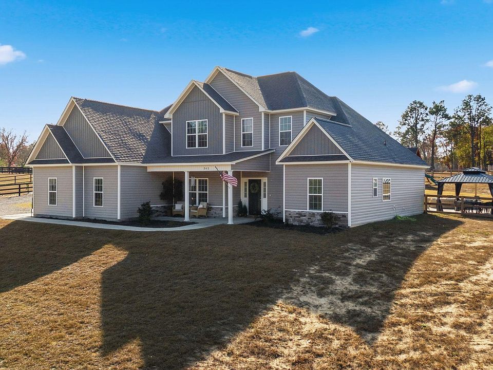 Impressive 5 bedroom and 4 bathroom home with shed, chicken coop, greenhouse and fenced yard situated on 5+ acres of cleared and usable land. With a flexible floorplan built in 2022 featuring both the primary suite and a guest bedroom on the main level, this home supports a wide range of living arrangements from multigenerational needs to a nursery or dedicated home office.