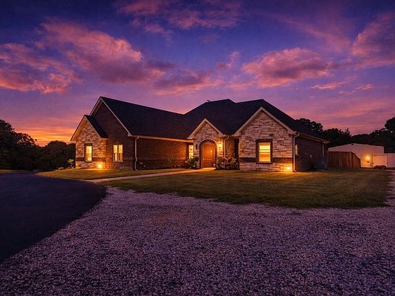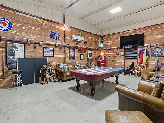 Rare find in Decatur, TX: a newer 2022 home on 2 acres with a 30x50 insulated, air-conditioned 3-bay shop—ideal for business owners, car enthusiasts, or anyone needing serious workspace. This impeccably maintained home features vaulted ceilings, warm beams, and walls of windows that fill the open-concept living space with natural light. The layout is perfect for everyday living and entertaining, with an oversized island and seamless flow to the backyard where you’ll enjoy an outdoor fireplace, hot tub, and peaceful country views. The backyard is fully dog-ready with space for play and a garden. The primary suite offers a soaking tub, dual vanities, makeup desk, and large walk-in closet. A front flex room works as an office, gym, or 4th bedroom, while two additional bedrooms are privately located on the opposite side of the home. The showstopper is the cedar-wrapped, spray-foam insulated, climate-controlled shop with dual mini-splits, custom shelving, and power for serious projects—perfect for a hobbyist, craftsman, collector, or entrepreneur. Additional outbuilding for yard tools and a small seasonal pond you can customize. A rare opportunity to own a move-in-ready home with a true climate-controlled workshop on acreage in Wise County.