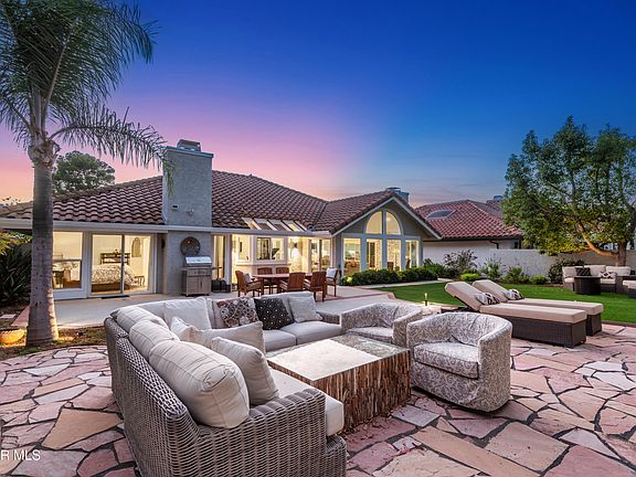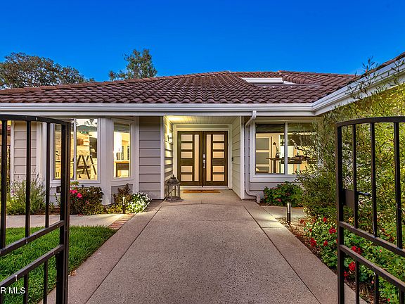 Extraordinary SINGLE STORY view estate in the exclusive gated community, Los Robles Fairway Estates! This 3 bedroom, 2.5 bath beauty has been completely reimagined inside and out using the very finest finishes! Spanning 2270 square feet of open concept floorplan enhanced by soaring vaulted ceilings, multiple skylights and so much more. The dream kitchen opens seamlessly to the dining and great rooms! The 'great room' boasts an abundance of doors and windows, stone fireplace, soaring high ceilings and amazing views! The primary provides a fireplace, sitting area, high ceilings, two walk in closets and a newer primary bath that is absolutely stunning! The 3rd bedroom is currently used as a gym and the additional secondary bedroom is en-suite. The grounds are remarkable! All new low maintenance turf, stone patios and epic views sitting above the fairway. Prime location in one of Ventura Counties best gated communities. An absolute winner!
